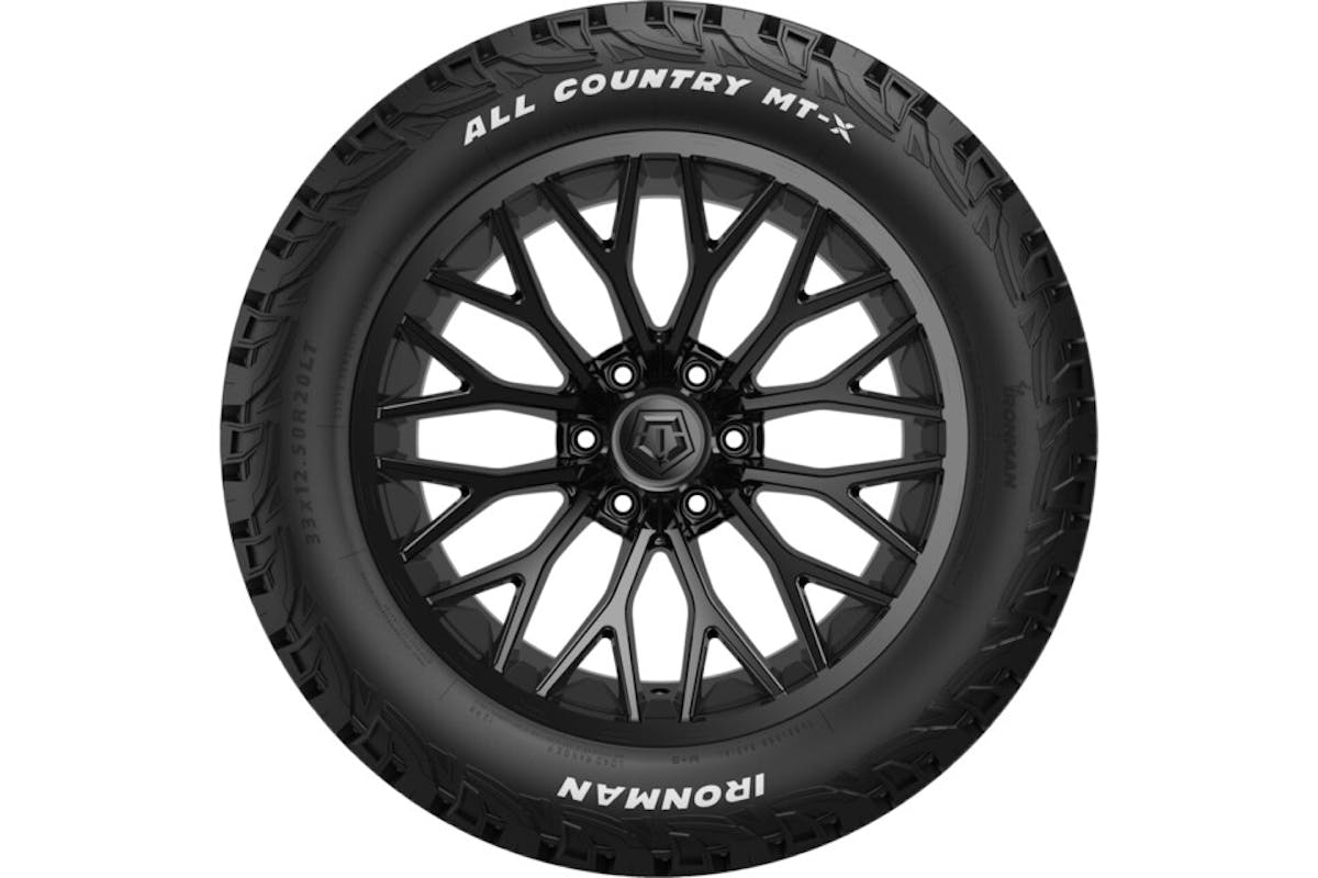 The Ironman All Country MT-X is available in 22 sizes, ranging from 15 to 22 inches in wheel diameter, and up to a 37-inch overall diameter in some applications. You can choose between raised white or black letter sidewalls.