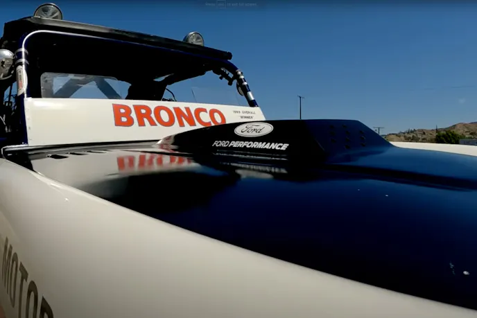 Following the garage discussion, Lerner and Leno head out for a test drive in the legendary off-road rig. The pair discusses some of the biggest challenges of driving a vehicle like this over a great distance. Jay also reveals his impressions of the Bronco’s new found speed and power available. “It is fun,” Leno exclaimed at one point while mashing the skinny pedal. The benefits and challenges involved in two-wheel drive versus four-wheel drive racers are even touched on.