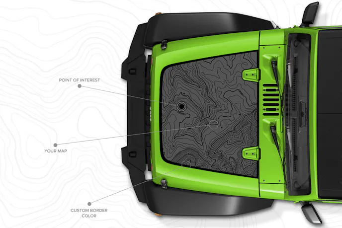 The technology behind maps we use is constantly changing, though at their core, they still serve the same purpose. Whether it’s a huge piece of paper that gets folded up 50 times, an app built into a smart phone, handheld GPS unit or in-car navigation, they all show us the known routes, trails, and streets. Jeep and Mopar have decided to help newer Jeep owners customize their rigs by allowing them to have a custom printed map on a hood decal specifically designed for their vehicle.