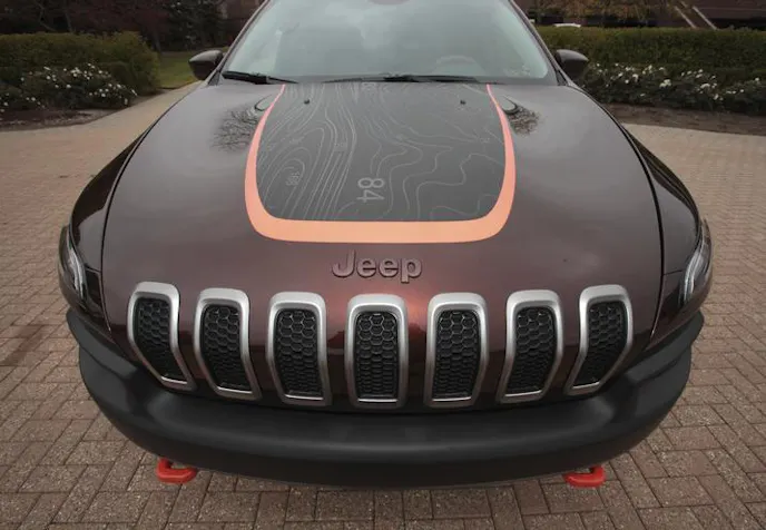 One of the first sightings of this idea was seen on the 2014 Jeep Cherokee Trailhawk in the 2013 SEMA show. It would seem the idea garnered enough attention and Jeep was paying attention. “The Jeep brand is teaming with Mopar to help owners personalize their vehicles in a way that supports their passion for off-road and on-road fun,” said Mike Manley, President and CEO — Jeep Brand, Chrysler Group LLC. “We know Jeep owners appreciate new ways to make their vehicles unique, and these hood decals are just the latest offering to help them accomplish that.”