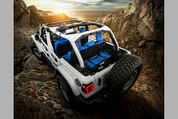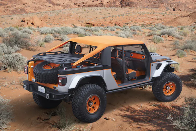 My favorite of the bunch would have to be the Jeep Bob Concept. This highly customized terrain-tackling SUV morphs a Gladiator and a Wrangler together. The result is an open-air freedom-loving Jeep that can take on everything.