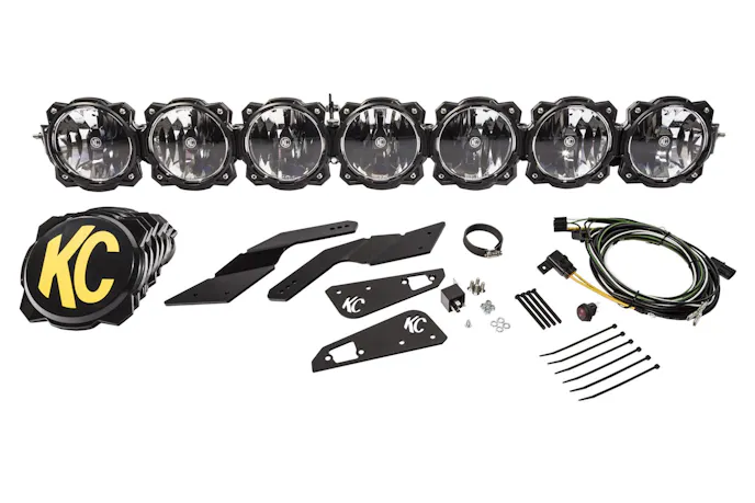 KC’s Gravity LED Pro6 7-Light 45″ LED Overhead Light Bar System for 17-18 Can-Am Maverick X3 UTVs delivers 16,100 lumens of output to provide light where you need it most. Includes mounts and hardware.
