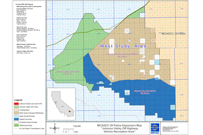 The final deal provides Johnson Valley OHV Area with 43,431 acres or year-round use, and an additional 53,231 acres open for vehicular recreational use for 305 days out of the year. The military will have exclusive use of the shared land for 30 days, twice a year, but is prohibited from using “dud-producing ordinance,” meaning artillery shells, bombs, etcetera. Recreational OHV patrons will have nearly 100,000 acres to play in most of the year.