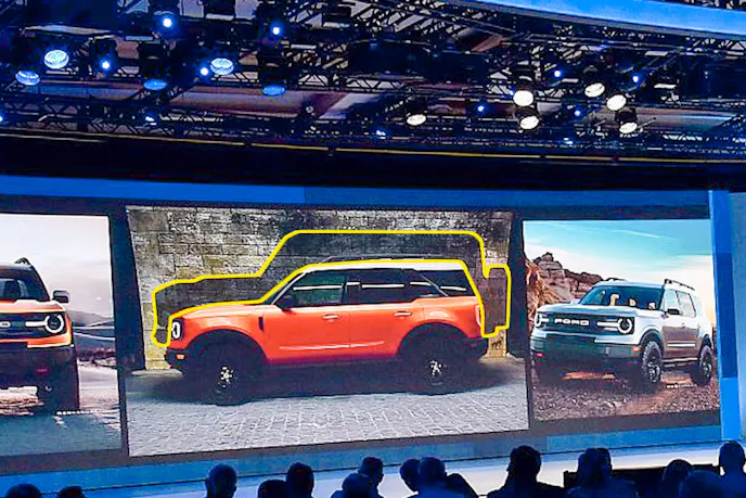 Further pushing the two “baby Bronco” possibility is a little easter egg in the photos shown. Notice anything weird about the shadow on the wall behind the vehicle shown? The shadow is for a much larger and boxier vehicle. It’s possible the shadow is supposed to represent the original Bronco, but that shadow is far too large and far too long for an original Bronco, so could it possibly be the shadow of the real Bronco coming in 2020? Only time will tell.