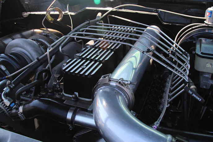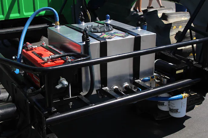 Two FASS fuel systems provide the go juice. Jake shared, “We have twice the pressure going to it. Each pump is probably running about 60 psi of fuel. It’s definitely pushing a lot of fuel. It’s also creating a whole lot of black smoke!” An eight-gallon racing fuel cell houses the fuel until it is needed.