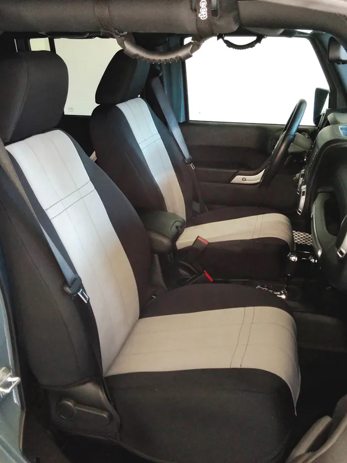 These superior quality seat covers are available for two and four-door model 2007 thru 2014 Jeep JK Wranglers, and come complete with head rests and everything necessary for easy installation. DuraPlus seat covers are a great choice for Jeeps, because the canvas-like material provides the highest protection against abrasions and is resistant to UV light, moisture, and mildew. With reinforced seams and high quality attachment clips that keep the covers firmly in place, CalTrend DuraPlus seat covers are tough, yet provide a soft comfortable feel with a foam inner liner that also provides added cushioning!