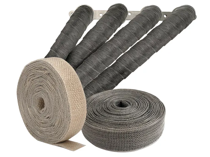- Features a dual layer material constructed of high temperature glass fiber, encased in a 304 grade stainless steel exoskeleton