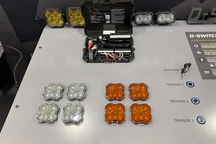 Diode Dynamics introduced a Dual-Color family that lets one fixture do the job of two. At SEMA, they showed Elite Series and SS3 fog lamps with SmartSelect quick-color switching (white to amber) and dual-color rock lights (white/amber or white/red) that work with existing harnesses.