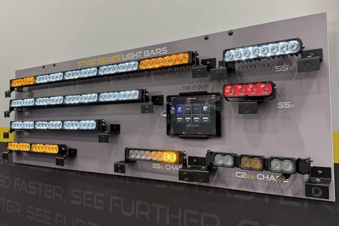 This fall, Diode Dynamics formally launched its all-new Stage Series light bars, a ground-up redesign that dovetails perfectly with the SEMA message. Headline items include significantly higher intensity (flagship bars measuring into seven-figure candela territory), Standard vs. SmartSelect control options, section control on larger bars, interchangeable lenses (swap to yellow later), and CrossLink compatibility for modular linking.