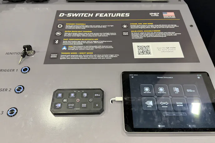 Lighting isn’t useful without control—and Diode’s answer is D-Switch, an eight-channel automotive panel built for 12-volt accessories with features like dimming, strobe, trigger wires, and app integration. For builders who want a single ecosystem, D-Switch pairs naturally with Stage Series hardware and the new Dual-Color pieces.