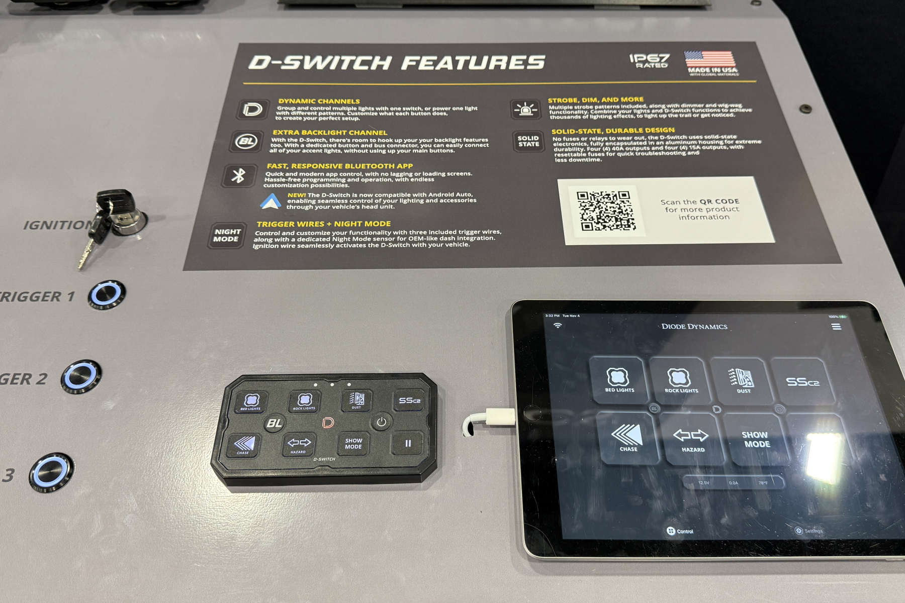 Lighting isn’t useful without control—and Diode’s answer is D-Switch, an 8-channel automotive panel built for 12-volt accessories with features like dimming, strobe, trigger wires, and app integration. For builders who want a single ecosystem, D-Switch pairs naturally with Stage Series hardware and the new Dual-Color pieces.
