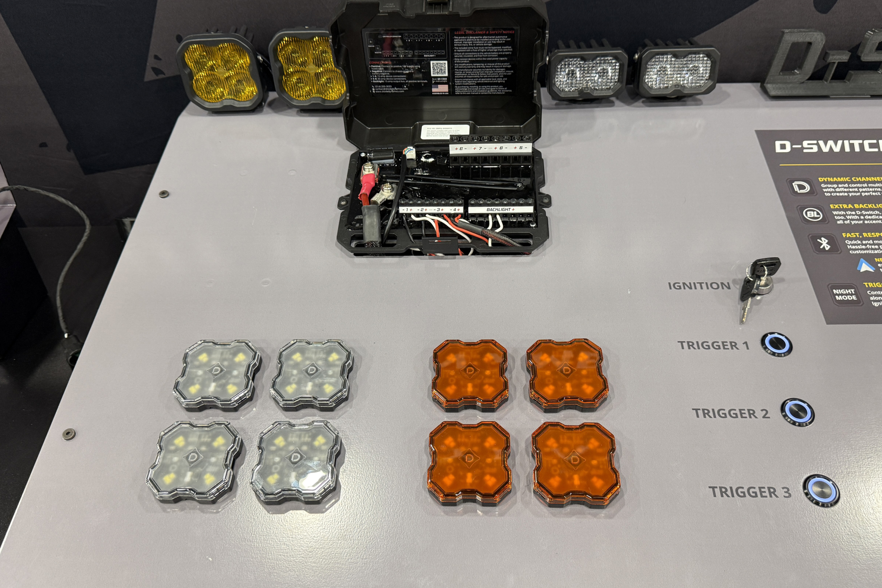 Diode Dynamics introduced a Dual-Color family that lets one fixture do the job of two. At SEMA they showed Elite Series and SS3 fog lamps with SmartSelect quick color switching (white to amber) and dual-color rock lights (white/amber or white/red) that work with existing harnesses.