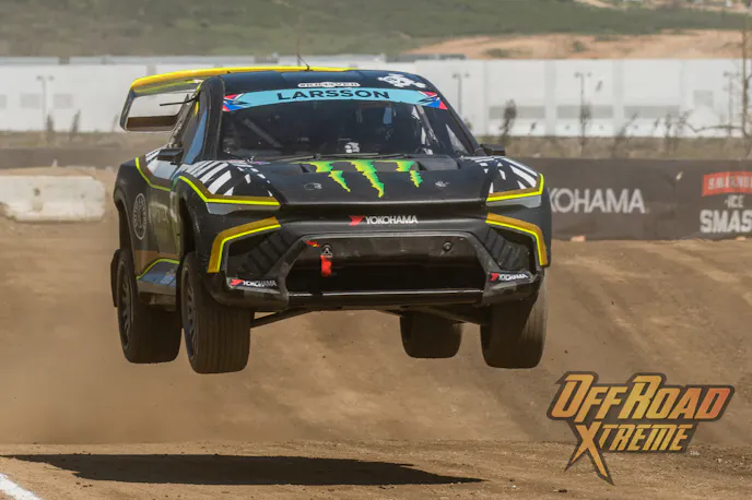 Sunday was wetter than the first two days of racing, with the rain picking back up in Southern California. The first of the drivers to adapt to the wetter conditions was Robin Larsson. Earning top qualifier and the points to go with it, he had all but secured the championship before the first heat. Bakkerud still had a chance though. If the results mirrored Friday with Andreas on top and Larsson in seventh or below, he could steal the title.