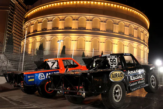 Across town, however, Caesar’s Palace was evidently the place to be for awesome stadium action. That’s because it played host to the final race of the 2013 Inaugural Season of SPEED Energy Stadium SUPER Trucks.