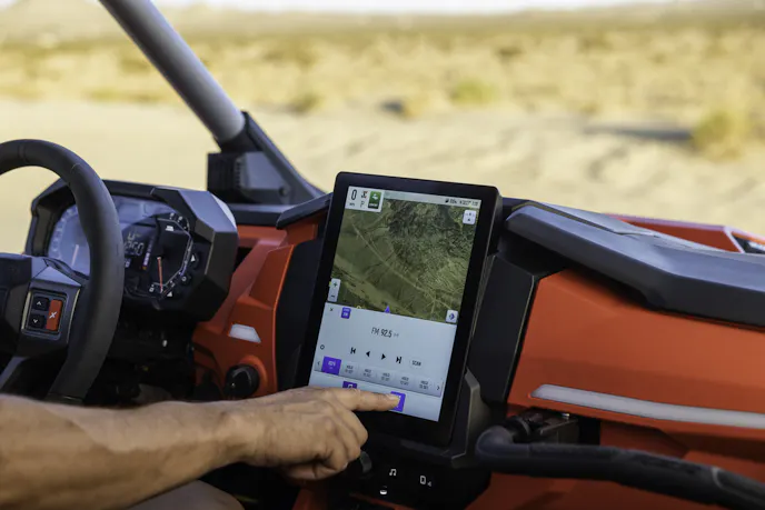 When it comes to pure performance, the RZR Pro R continues to reign supreme. And now it’s smarter than ever. The 2026 RZR Pro R Ultimate comes equipped with a new 10.4-inch vertical touchscreen powered by Ride Commad, the largest display in powersports. This massive screen is 2.3 times larger than before, with lightning-fast processing and split-screen capability, letting riders track their route and monitor vehicle systems at the same time.