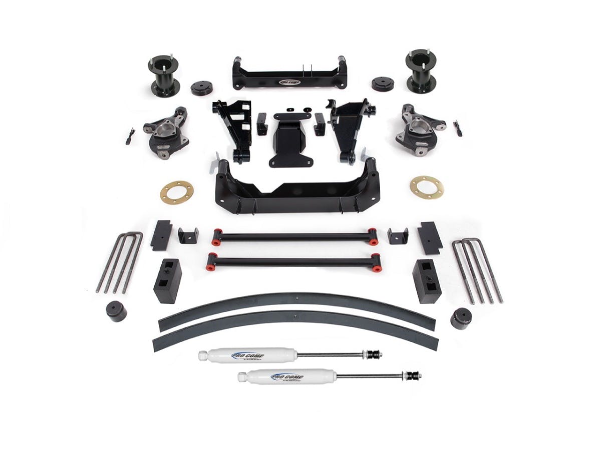 Strut spacers are placed on top of the factory struts to maintain the OE ride quality and handling while providing enough clearance for 35-inch tall tires. For even greater performance, Pro Runner or adjustable MX2.75 coilover shocks can be added either at the time of installation or in the future as dictated by your budget and needs. Pro Comp has all late model GM trucks covered, including both 2WD and 4WD, with separate part numbers for trucks equipped with steel steering knuckles or aluminum steering knuckles. The rear portion of the suspension includes an add-a-leaf, lift blocks, new u-bolts, and nitrogen charged Pro Comp ES9000 shock absorbers. As you have come to expect from Pro Comp, all necessary bracketry and hardware is included with every kit, including crossmember compression struts, a front differential skidplate, sway bar drop brackets, brake line extensions, and high strength hardware.