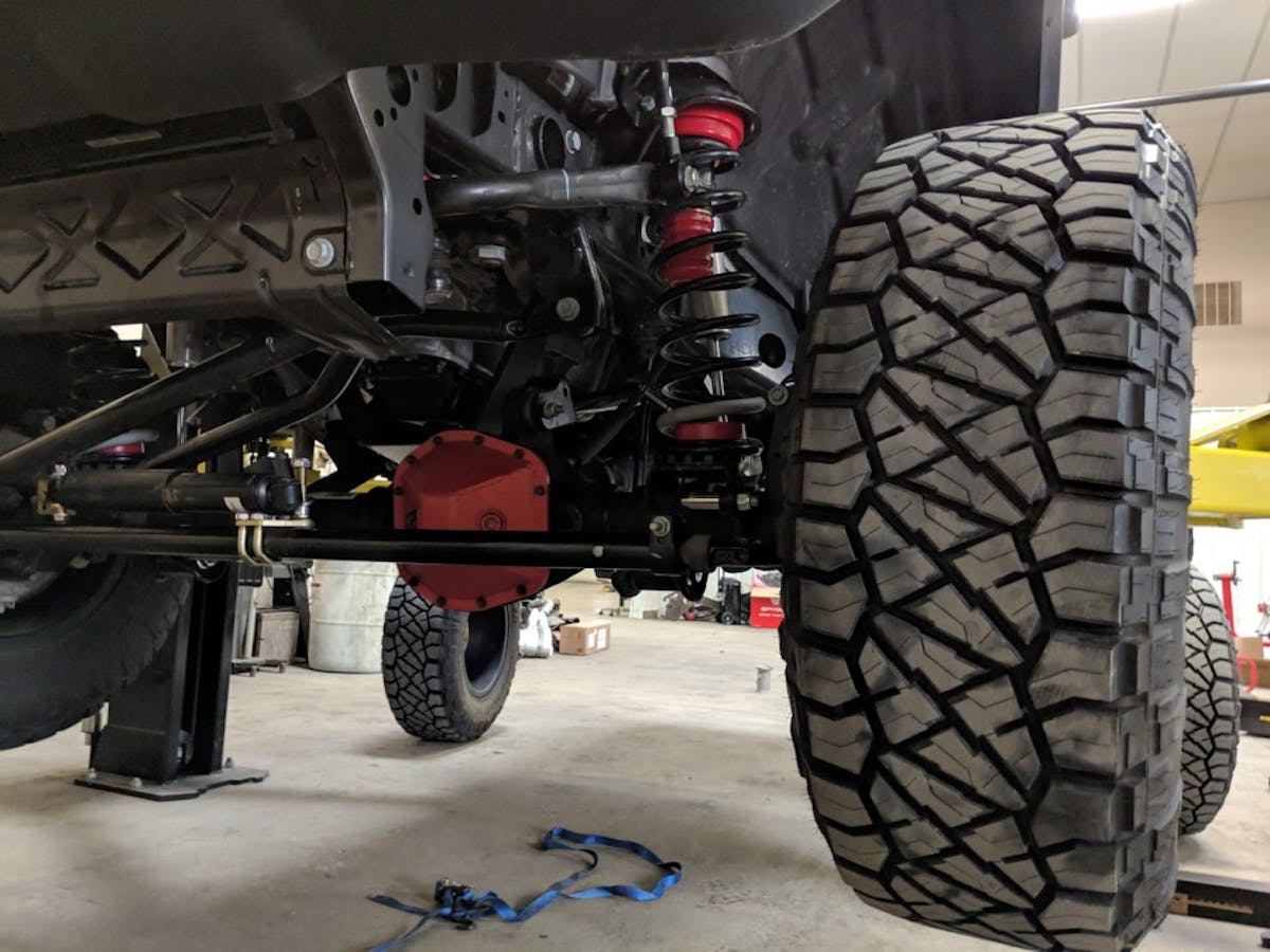Ascare explains that the reason for running the lower of the two height options is twofold. On one hand, he has to accommodate his current tire size; on the other hand, he needs to run a Warn winch in conjunction with a winch bumper. With these additional components in place, the additional half-inch spacer will make its way onto the vehicle in order to compensate for the bump in weight.