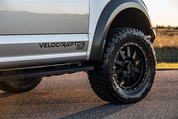 Hennessey also offers a VelociRaptor off-road stage one kit that includes VelociRaptor front and rear bumper, five LED lights in front bumper, 20-inch Hennessey 10-spoke wheels, 35-inch Toyo off-road tires, and front suspension leveling kit with an overall lift of three inches. This kit runs $12,995 and is available by itself or as an additional option to the VelociRaptor 600 package.