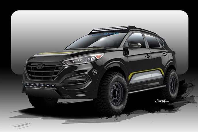 SEMA vehicle builds are popping up more frequently as it gets closer to the show in Las Vegas, Nevada November 3rd to 6th at the Las Vegas Convention Center. Hyundai has teamed up with Rockstar Performance Garage to inject their 2016 Tucson with some off-road blood.