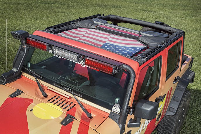 A functional accessory with a custom-look for those who crave the “open-air” experience in their Jeep but still want protection from harsh sunlight, the new Sun Shade options now include bright red and American Flag designs.