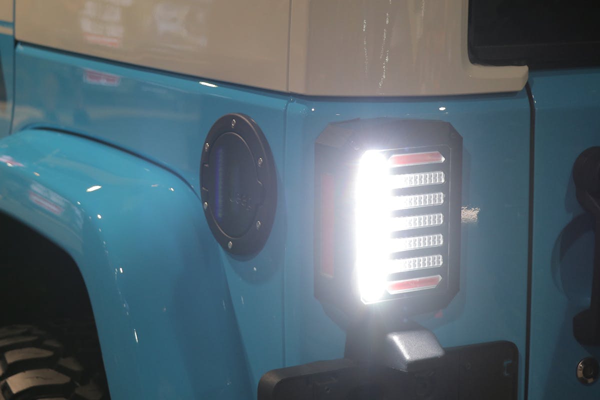 Putco is working on expanding their lineup into more Jeep products, and they had some new all LED replacement tail lights to show off. Featuring chip-onboard technology, these are the currently the only Jeep taillights with sequential amber turn signals. Oh, and did we mention these things are BRIGHT? The reverse lights are rated at 1,200 lumens which really lit up the booth at SEMA during our demo. Expect to see these available in the first quarter of 2018.