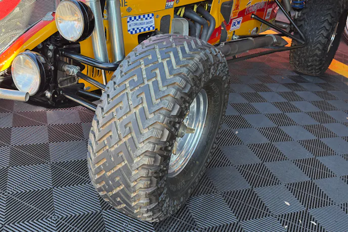 Working with his engineers, Thompson developed a tire that could survive — and thrive — in the desert. The result was the Mickey Thompson Baja Belted, a breakthrough in off-road tire design. It combined a rugged, belted construction with an aggressive tread pattern unlike anything else on the market.