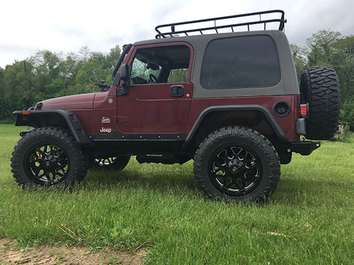 They went with JcrOffroad to get the rock sliders, spare tire carrier, bumpers, LED headlights, and a full carpet kit. Then they went to Just Jeep ‘N Stuff for a roof rack, which was mounted to the hard top. This Wrangler also received a fresh coat of paint.