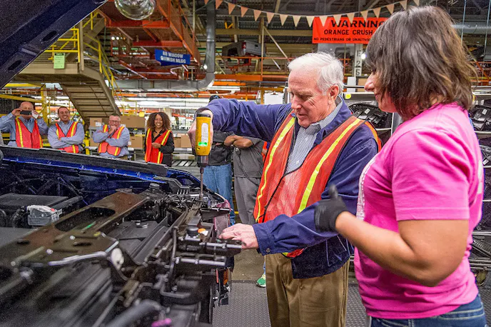 The lucky owner of the record truck was Lee Adams, owner of Tri-State Compressed Air in Goshen, Indiana. Adams was able to make the trip to the plant for a tour and to lend a helping had to members of UAW Local 2209.