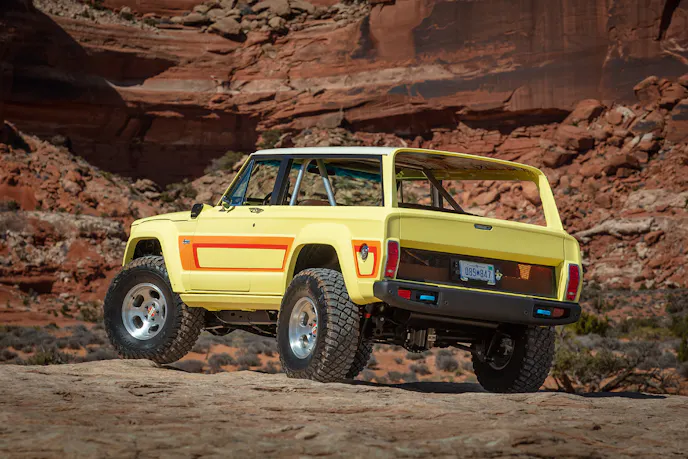 Another trip down memory lane leads to this year’s Resto-mod concept build. First introduced in 1974, the Jeep Cherokee (SJ) was a sporty, two-door version of the Wagoneer and featured bucket seats, a sports steering wheel and racy detailing designed to appeal to younger, more adventurous drivers.