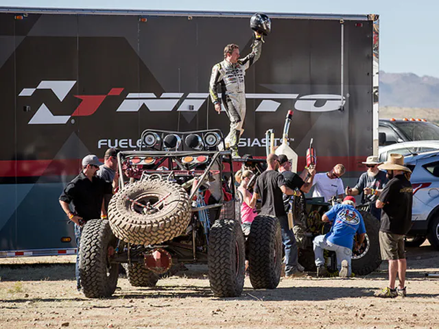 To cross the finish line, each rig had to mob through five laps of a 16-mile course. The course was a treacherous combination of open desert and rock-crawl sections that were specifically designed for the Ultra4 cars. Current series points for each of the drivers determined their starting position for this race. Every 30 seconds, a competitor launched off the line.