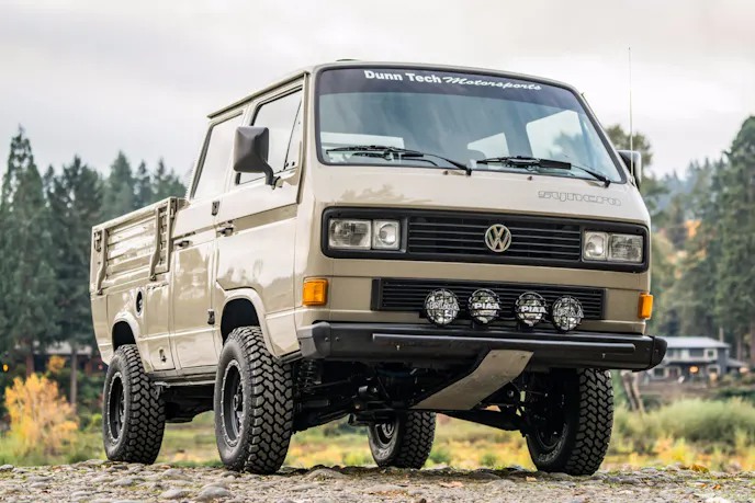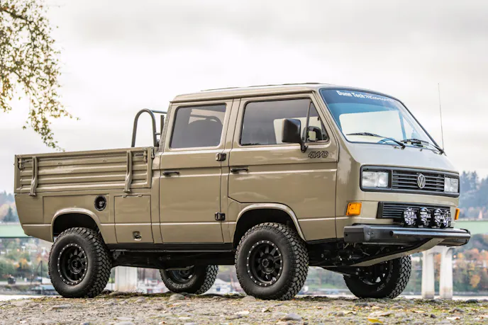 Okay, that’s a lot of words, so let’s break it down. T3 refers to the third generation of Volkswagen’s iconic Type 2 “Bus” vans. These were produced from 1979 to 1990, with a special batch made exclusively for the South African market until 2002. By and large, these vehicles were two-wheel-drive when sold in the U.S., so finding a four-wheel-drive (as denoted by Syncro) model is pretty rare nowadays. As for Doka, that derives from the German word doppelkabine, or “double cabin;” effectively, a crew cab layout.