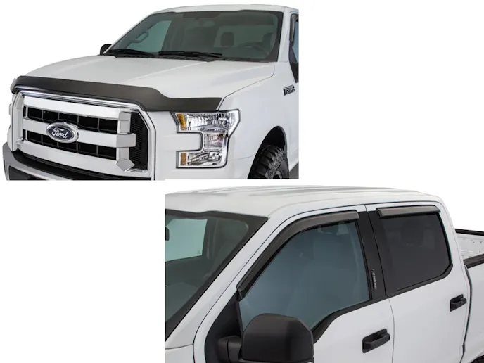 For wind, rain, and bugs, you need protection on your brand new 2015 F-150. Look no further than Stampede Automotive Accessories, which has announced two new products for the truck: the Vigilante Premium Series Hood Protector and its Tape-Onz Sidewind Deflectors. Details are below.