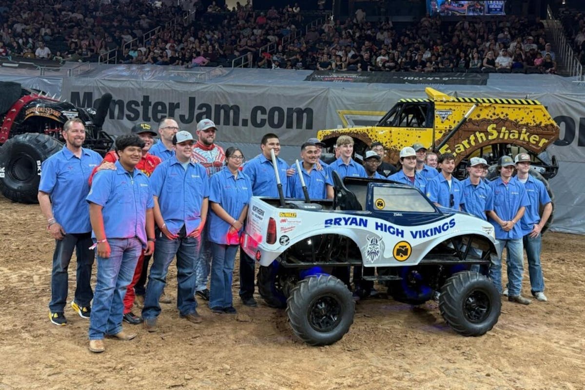 A group of Bryan High School Career and Technical Education (CTE) students in Bryan, Texas, spent the last school year building a 1/3-scale monster truck from scratch. The mini monster truck project is part of Northern Tool + Equipment’s Tools for the Trades program. The program partnered with the school and Monster Jam to make the build happen. The build’s official name is the Northern Tool + Equipment Tools for the Trades Monster Jam Mini Build—supported by DEWALT, Ingersoll Rand, and Milwaukee Tool.