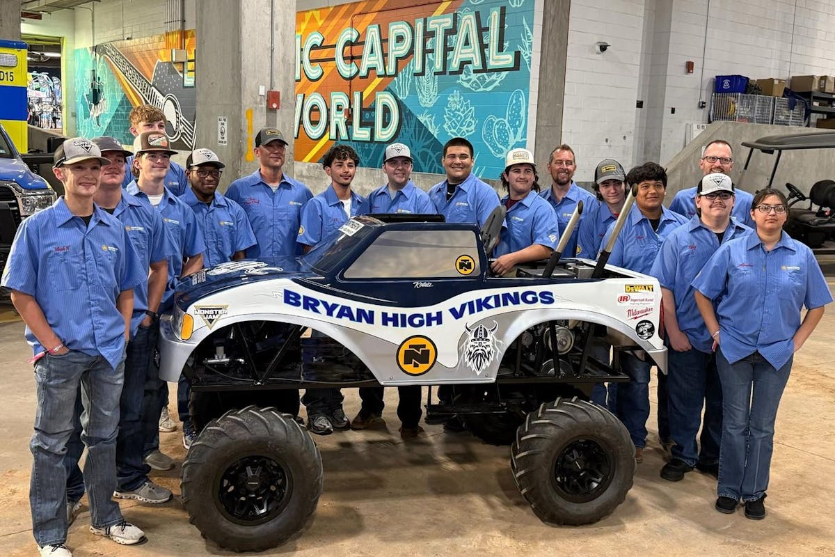 A group of Bryan High School Career and Technical Education (CTE) students in Bryan, Texas, spent the last school year building a 1/3-scale monster truck from scratch. The mini monster truck project is part of Northern Tool + Equipment’s Tools for the Trades program. The program partnered with the school and Monster Jam to make the build happen. The build’s official name is the Northern Tool + Equipment Tools for the Trades Monster Jam Mini Build—supported by DEWALT, Ingersoll Rand, and Milwaukee Tool.