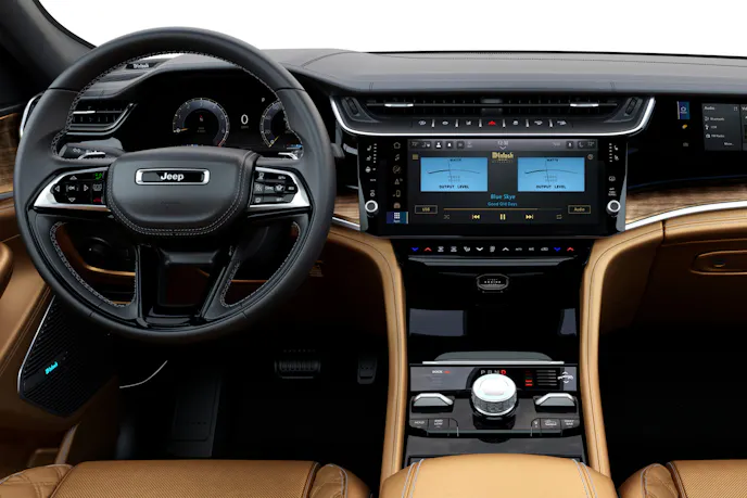 Step up to the Limited, and Jeep layers on Silver Silk exterior accents, heated second-row seats, leatherette upholstery, and a nine-speaker Alpine audio system. Optional packages like the Limited Reserve add 20-inch black wheels, dual-pane sunroof, Nappa leather, ventilated seats, an off-road camera, and more. The Limited Altitude package brings darkened exterior accents and panoramic glass to elevate the SUV’s look and feel.