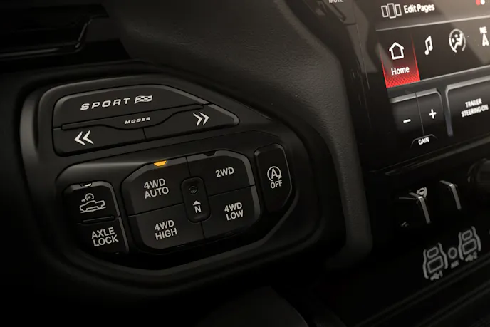 The Rebel X builds on the inherent capability of the Ram 1500 Rebel, which already comes equipped with serious off-road hardware. A one-inch suspension lift with Bilstein front and rear monotube shocks gives the truck added ground clearance and improved damping over rough terrain. An electronic locking rear differential (E-locker) ensures traction when conditions get technical, while underbody skid plates protect vital components from trail damage.