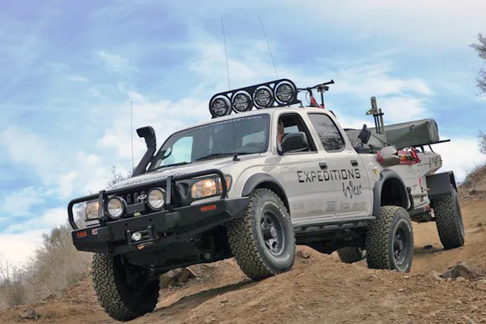 The Tacoma allows you to carry passengers comfortably inside the cab. Not having to worry about being crammed with gear. Its aftermarket world is filled with companies that carry anything from lift kits to heavy duty bumpers where you can put a winch in. The Tacoma has a very large add-on market for both trail rigs and desert toys. The Tacoma can be a dependable and capable vehicle to use out in the desert.