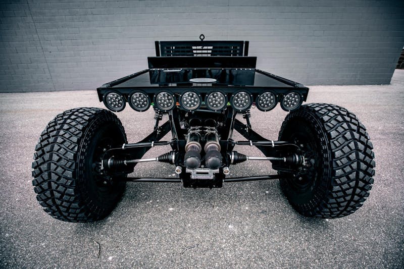 The Reboot Buggy was built more as an art piece than as an actual off-road vehicle. But that doesn’t mean it won’t work off-road as well. With more than 400 horsepower and a long-travel suspension, the Reboot Buggy handles high-speed sand dune runs with remarkable ease. It would also handle moderate desert running, though we’d keep it in the shallow end due to the use of factory Ford Explorer steering knuckles.
