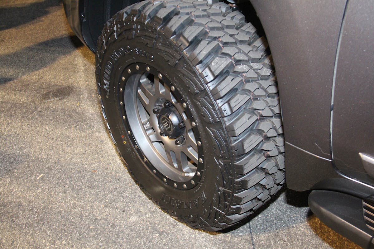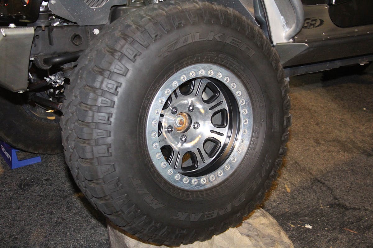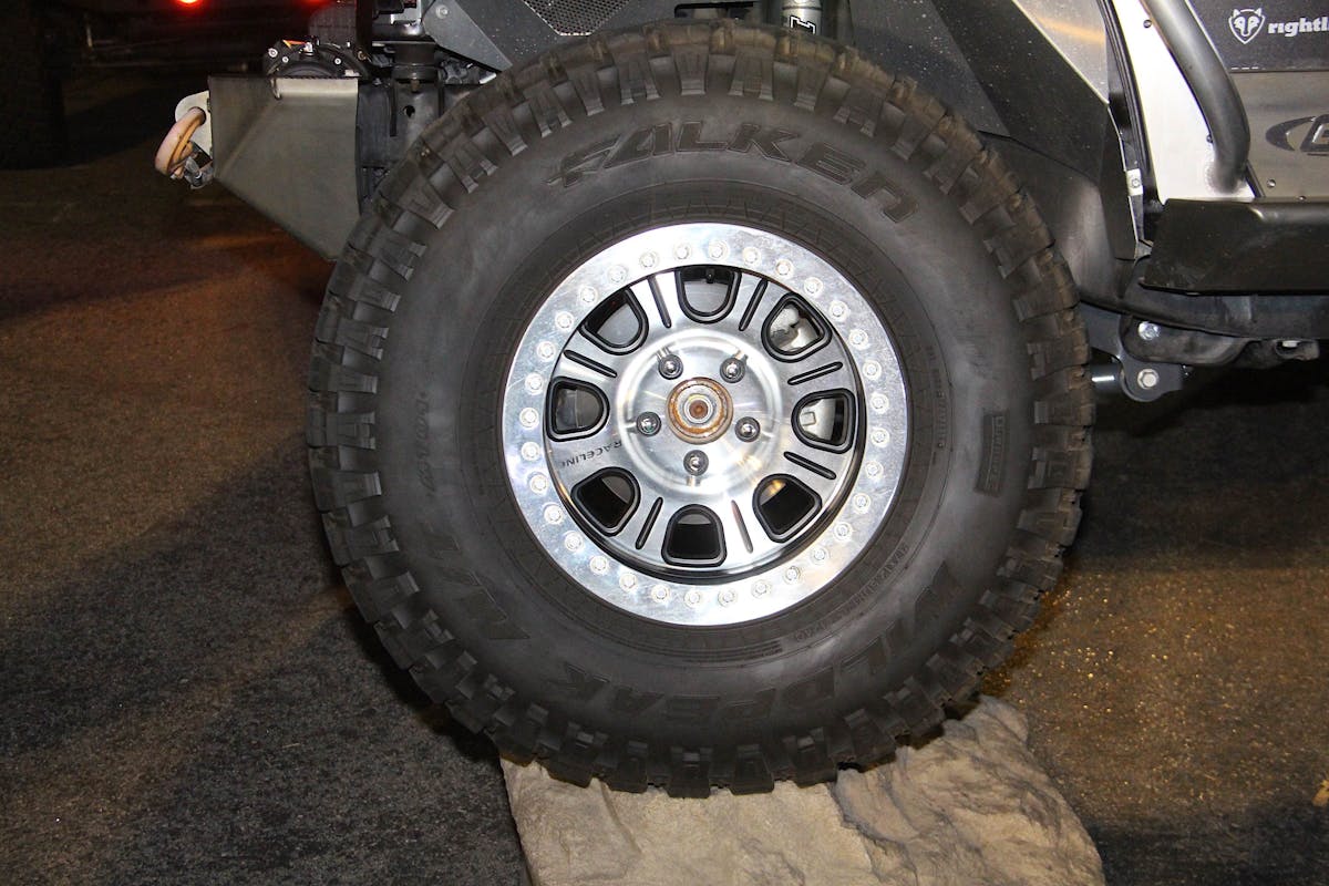 Last, but certainly not least, is the flashiest wheel/tire combo of the three. The wheels are Raceline RT232 bead locks which have a polished face but are black on the sides of the spokes, and also have a black cutout in the middle of the spoke. The lip of the wheel is also black, but it’s hidden behind a polished beadlock which finishes off the design very well. Wrapped around that Raceline wheel is a Falken Wildpeak M/T tire which has the least aggressive sidewall of the bunch, the tread is nice and aggressive like an M/T tire should be.
