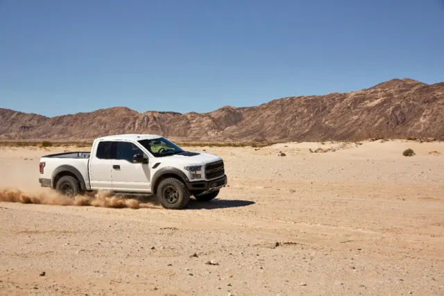 Should ideal conditions present themselves, though, the Raptor comes with a new Sport mode for what Ford calls “spirited on-road driving.” Sport mode increases throttle response and provides a “sportier” feel to the driving feedback, as well as optimizing the transmission for rapid shifting through the 10-speed automatic.