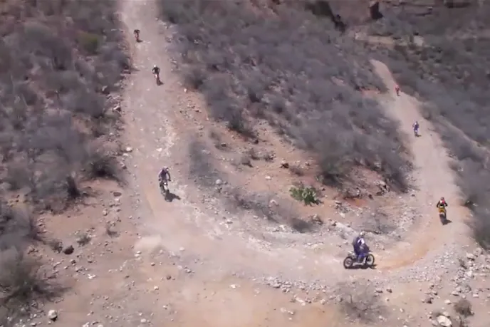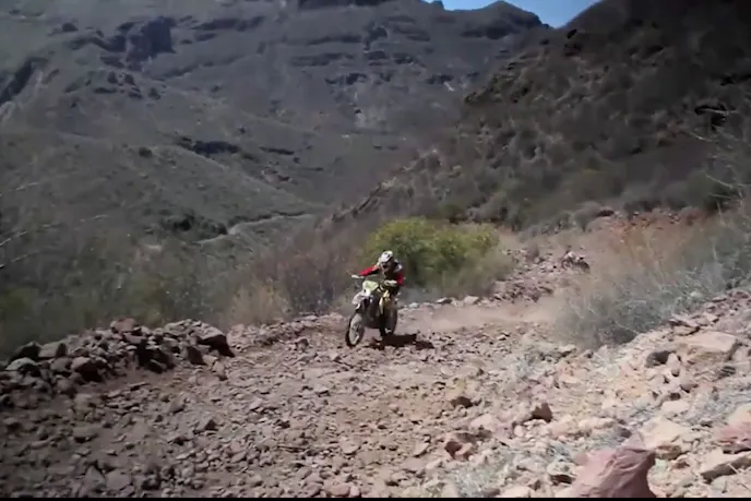 Many of the spots on the list have been motorcycle only trails. This next spot, Ward Falls, is a totally new motorcycle trail in Baja that was built by Kevin Ward. When the crew visited the trail for the video shoot, only eight people had experienced the trail. The trail goes through a desert single track and eventually some really gnarly mountain terrain. The big feature of the trail is the giant rock wall.