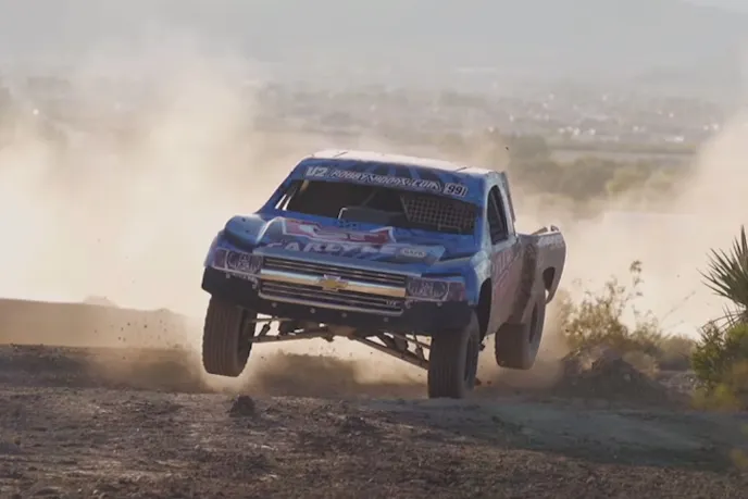 Starting from scratch and working on a threadbare budget, Woods never lost sight of his goals despite the blood, sweat, and tears involved in the build process. His sprawling estate doubled as home and test track, which we get a taste of in the above video. We also get to see a couple of heavily-modified Chevy prerunners, looking fast and mean as Woods jumps, bumps, banks, and bombs his way around the Mojave.