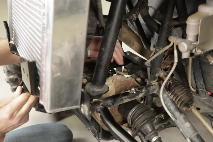 Using a 2011 Polaris RZR 800S, Holley’s Ray Frescas walks us through the process. After undoing the negative battery terminal, he goes after the front clip and removes the grille. The winch plate that came with the winch doesn’t fit, so a fabricated solution is made. Ray secures the plates to the frame with thread sealant, and then mounts the winch to the plates.