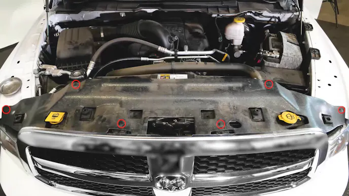 The first step is to remove the plastic cowl that helps direct air into the radiator, just above the grille. They are held on with a set of body clips that can be easily removed using a forked body panel tool. Callaway provides a quick tip – slipping the tool under the cowl and pulling up keeps the clip inside the cowl. This helps prevent you from losing them while working on the rest of the truck.