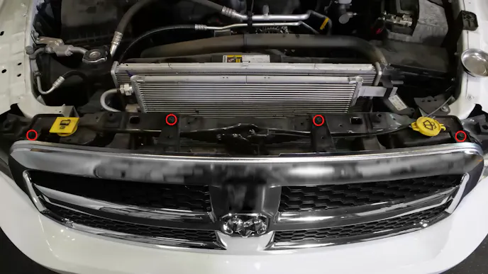 Next is the grille, which is held in by bolts and clips. The top uses four 10mm bolts that you must remove first. Grab the grille on each side and pull until you hear a “pop.” Do one side at a time and it will come out.