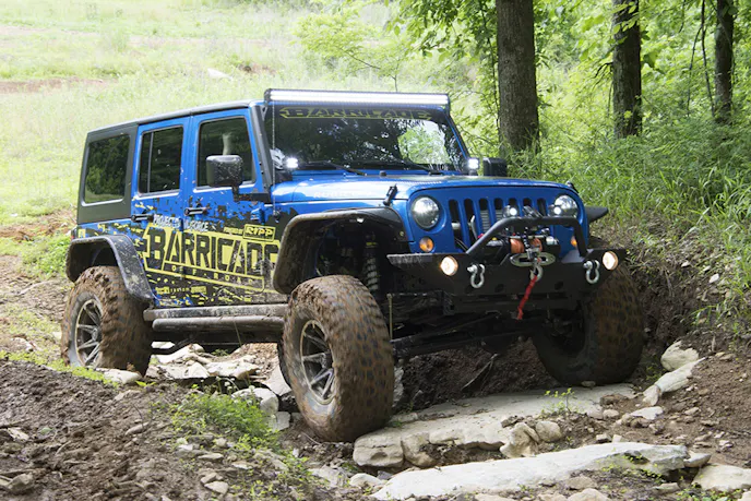 Project Trail Force has a Rock Krawler long-arm lift kit letting the Jeep sit 3.5 inches  higher than stock and using coilovers to be able to get the clearance over anything while out on the trail. The Jeep also sits on 37-inch tires and Mammoth Boulder Wheels, so it is ready for anything that is thrown at it.