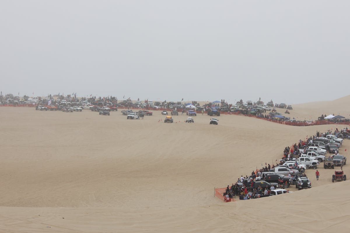 On the morning of the event, a line started to form at the ranger station sometime around 4:30 a.m. By the time the gates opened at 6:00, there was a line of approximately 200 vehicles ready to enter the first unofficial competition: the battle for the best spot to park in anticipation of the controlled chaos that is Huckfest. Throughout the day, there was a constant line of spectators’ vehicles making their way through the Pismo Dunes to the official jump site.