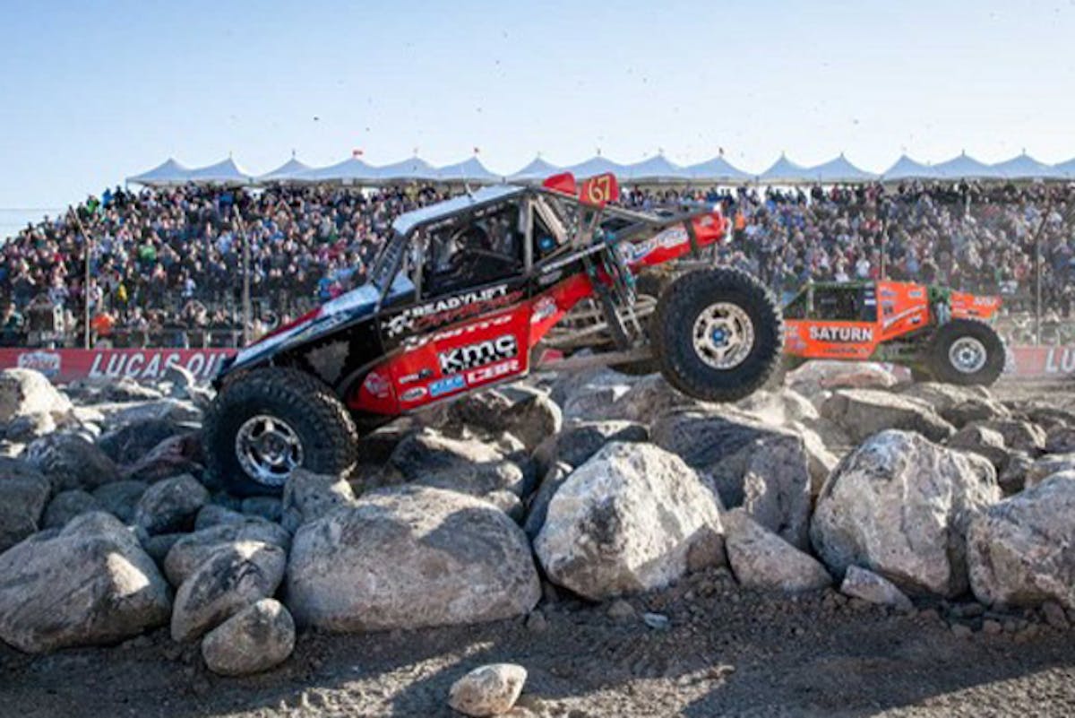 When the green flag dropped for the main event, it was two-time King of The Hammers winner, Shannon Campbell that ultimately gave Healy a run for his money. The two drivers raced side-by-side in nearly identical lap times. However, when Campbell went for the pass on a long downhill straight-away, one of the tires on his car caught a boulder at the bottom and sent the car into a roll. This accident gave Healy the lead.