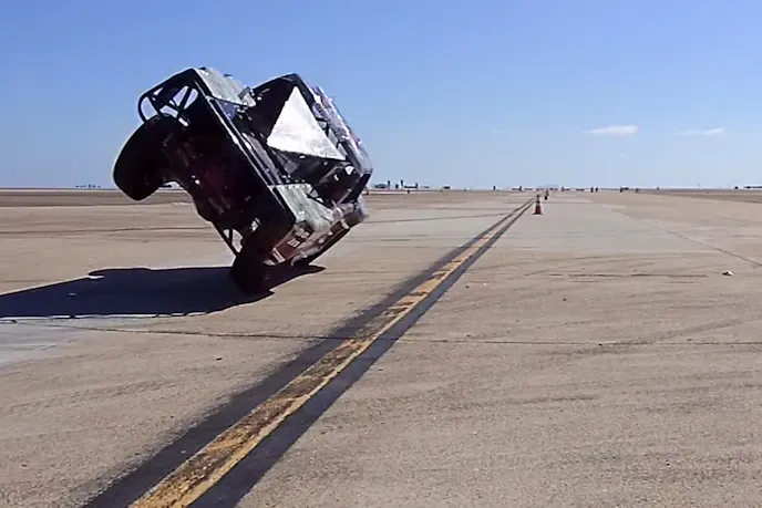 Do you remember the old demolition derbies during which stunt drivers would bicycle a car as part of the show? Well, that art is not lost. Drivers Robby Gordon and Sheldon Creed, both very competitive off-road racers, were at the Coronado Speed Festival in San Diego, California recently to give festival attendees a taste of what the Stadium Super Trucks (SST) were all about. Gordon went on to win the Coronado SST Series race that weekend, but to top it off, he and fellow SST Series competitor Sheldon Gordon put on a stunt show of their own.