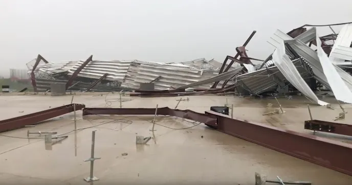 The Grandstands at the off-road track had recently gotten a new roof, unfortunately, it did not make it through the storm. Many people were on-site, ready for the upcoming Lucas Oil Show-Me 100 race. There were no fatalities but several RVs were toppled over and moved by the high winds, some of them with people inside.